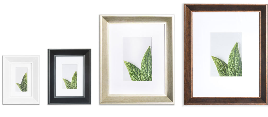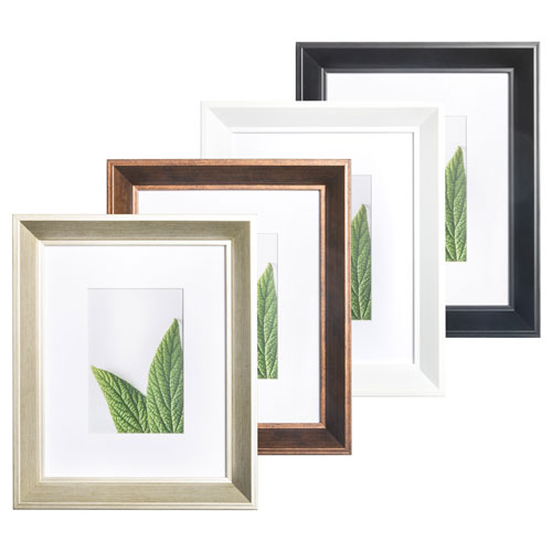Stylish. Extra wide white, bevel cut mat included for gallery quality presentation.